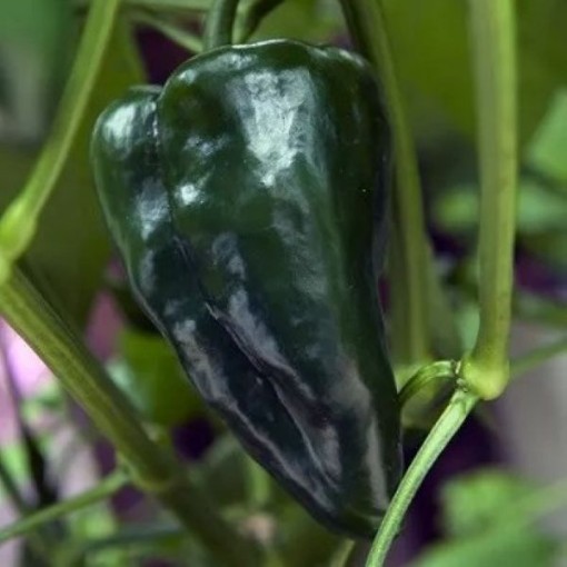 85 days. Capsicum annuum. Open Pollinated. Ancho San Luis Pepper. The plant produces high yields of 6" long by 3" wide hot peppers. Peppers are mildly hot, have medium thick flesh, and turn from dark green to red when mature. The plant has green stems, green leaves, and white flowers. Excellent for Mexican cuisine, stuffing, roasting, Rellenos, and making seasoning spice powder and mole sauces. A variety from the USA.