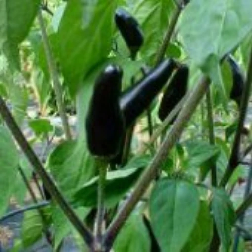 85 days. Capsicum annuum. Open Pollinated. Czechoslovakian Black Pepper. The plant produces good yields of 2 ½" long by ¾" wide hot peppers. Peppers are mildly hot, grow upright, have medium thick flesh, and turn from green, to black, to red when mature. The plant has fuzzy green stems, fuzzy green leaves, and purple flowers. Excellent for making salsa. A variety from the Czech Republic. Scoville Heat Units: 1,000.