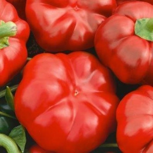 80 days. Capsicum annuum. Open Pollinated. Sweet Cheese Red Pepper. The plant produces high yields of 3" long sweet pimento peppers. It has thick flesh and a sweet candy like taste. Peppers turn from green to red when mature. Excellent for salads, pickling, stuffing, and garnishes. Also, historically used for flavoring and coloring cheese. Good freezing variety. Suitable for home gardens, raised beds, and greenhouses. A heirloom variety from Spain.